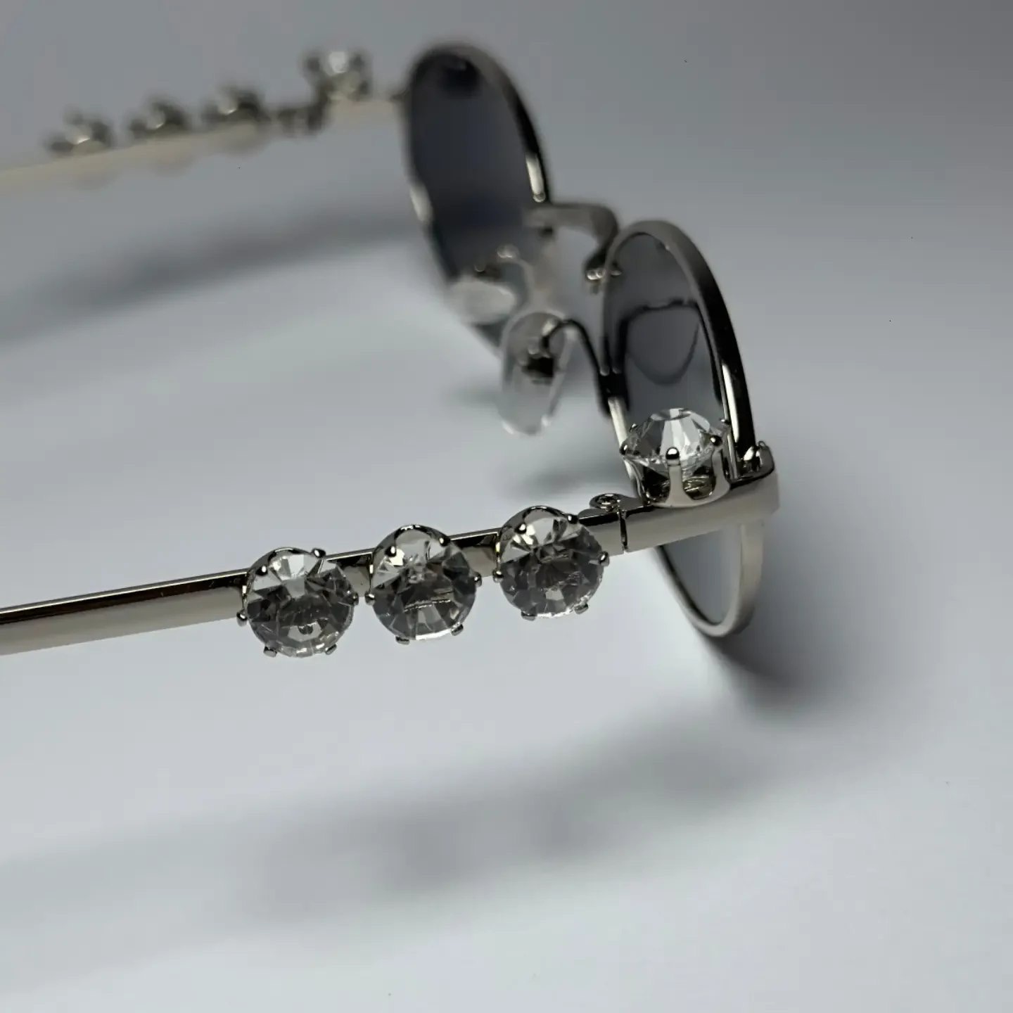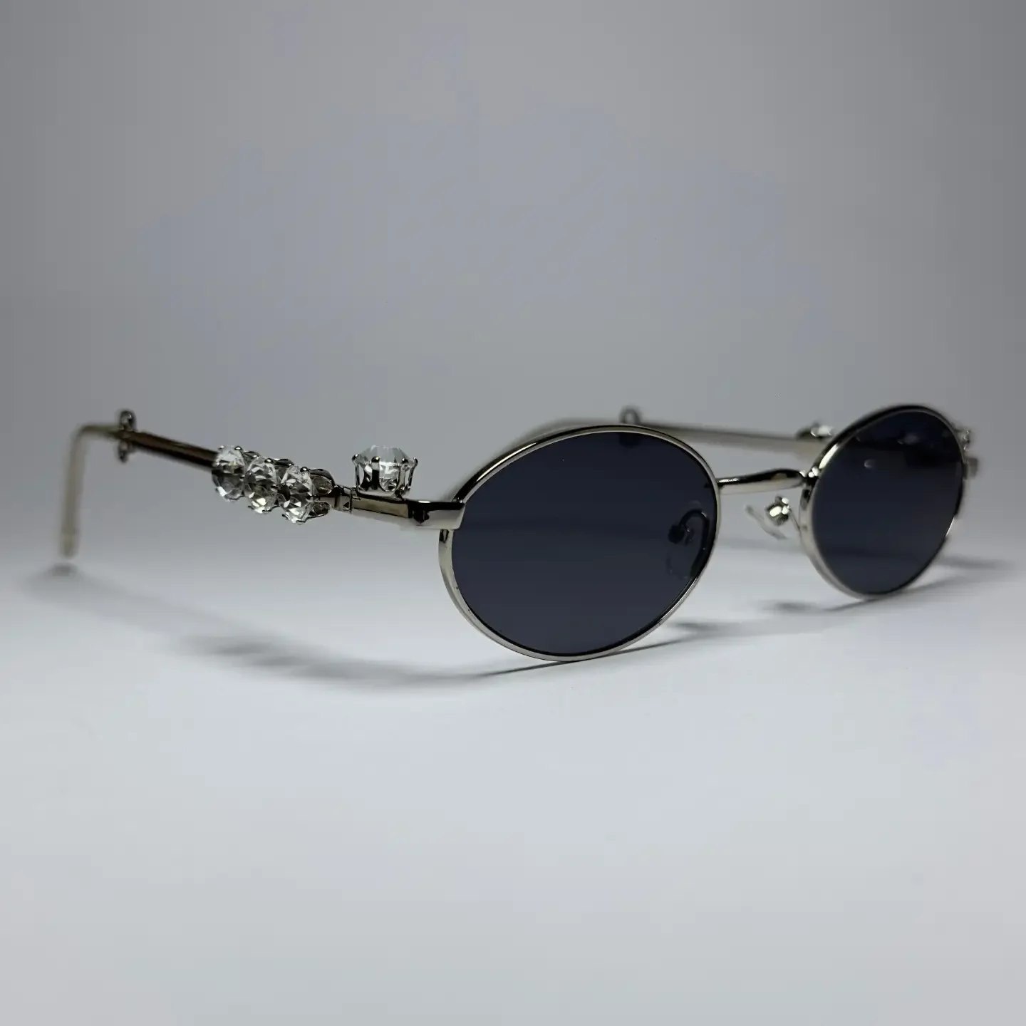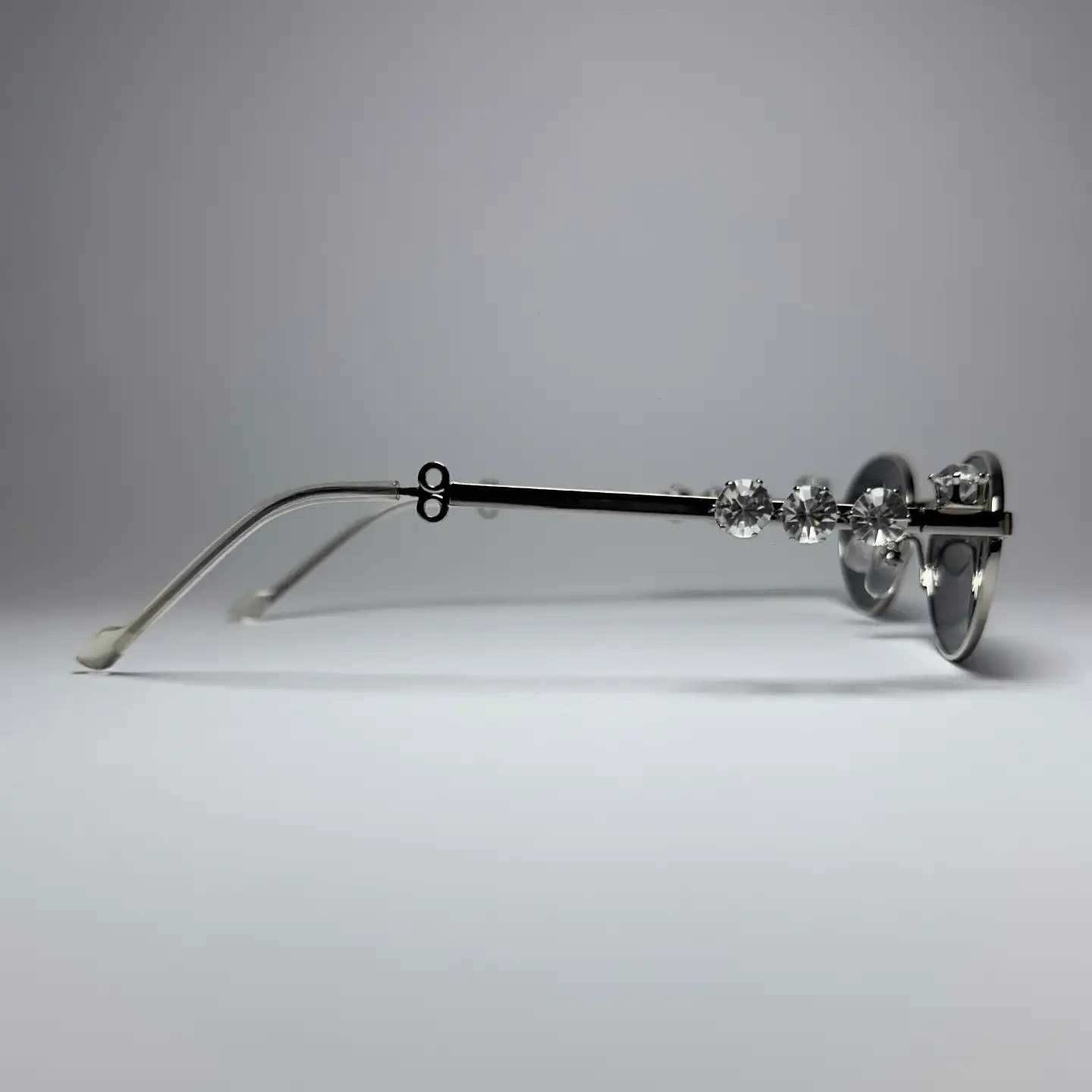 عینک مارک جنتل مانستر مدل بیضی با دسته های کار شده از نگین های شفاف درشت که خاص بودن این فریم رو چند برابر میکند